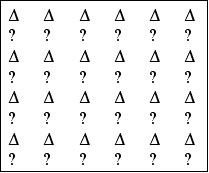 Schauen wir uns zunächst die nebenstehende Grafik an. Wir sehen ein Rechteck, dass mit X- und O-Symbolen gefüllt ist. Innerhalb dieser Form erkennen wir aber auch die einzelnen Spalten mit X- bzw. O-Symbolen als zusammengehörig. Man könnte sagen, dass sich ähnliche Formen als Streifen durch die Grundform ziehen.