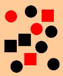 - Shape: Shape, and shape like elements such as direction and texture, can also form groups. When all other things are equal it performs quite well in this function. The squares and circles used here are simple geometric shapes. It is possible to make shapes that are more distinct and therefore more noticeable. Complex shapes may stand out more but there is attractiveness to simpler shapes that makes them more powerful visual elements in most cases. They appeal to our sense of order.