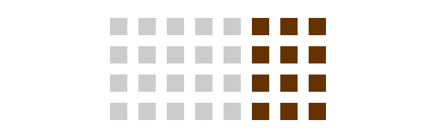 The example above shows that the elements are split into two categories, where all of the gray squares are related and all of the brown squares are related (similar to the AIGA example above). The two sections are clearly distinct, even though this example—and all of the previous ones in this section—have exactly the same physical structure.