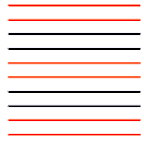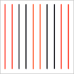 Die Abbildung zeigt wieder 10 Linien. Die Distanzen zwischen ihnen sind gleich, nach dem Gesetz der Nähe gibt es also keine Struktur in ihrer Anordnung. Die Ähnlichkeit in der Farbgebung bewirkt aber, dass sie in unserer Wahrnehmung gruppiert werden. Die roten und schwarzen Linie bilden 5 Paare, und wir tendieren dazu, diese Paare als Einheiten wahrzunehmen.