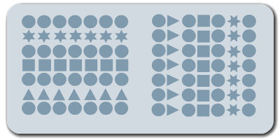 The example above (containing 11 distinct objects) appears as as single unit because all of the shapes have similarity.