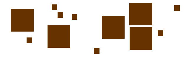 Which of the elements above seem related? How?In all likelihood, you’ve decided that the large squares are related to one another and the small squares are related to one another. Size is a way to provide contrast, therefore consistency of size can be exploited to suggest relationships.