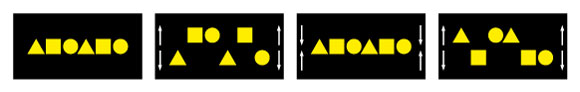Eine Bewegungsrichtung von Objekten kann durch ihre Form definiert werden oder über ihre Anordnung und Position zu Nachbarobjekten. Objekte unterschiedlicher Form, die stillstehen, werden automatisch nach der Ähnlichkeit ihrer Form sortiert. Im Gegensatz dazu werden Elemente, die sich in dieselbe Richtung bewegen, als zusammengehörig interpretiert, obwohl sie unterschiedliche Formen aufweisen. Sie werden entsprechend ihrer Bewegung und Richtung sortiert.