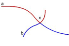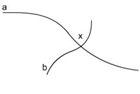 Niemand wird auf die Idee kommen, dass es sich bei a und b um v-förmige Gebilde handelt, die sich im Punkt x berühren... (siehe Abb. 9)