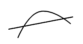 Wenn man diese Grafik ganz elementar und einfach beschreiben wollte, könnte man sagen: "Das sind 59 schwarze Punkte". Dies ist nicht grundsätzlich falsch, es erscheint uns aber natürlicher, sie als zwei gekrümmte Linien zu sehen, die sich an zwei Punkten schneiden.