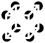 A simple example of this is illustrated. You notice the small circle that the hand points at in preference to the closer, larger circle. In a sense this is a kind of closure -- a grouping of disconnected items by momentum.