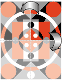 Alignment - center axes continue out from a shape. Do not line up two or more objects on their center axes (this does not apply to two circles since they have axes in all directions -- the possibility of using two circles together would be eliminated). More than two circles in a line, however, still uses of symmetry.